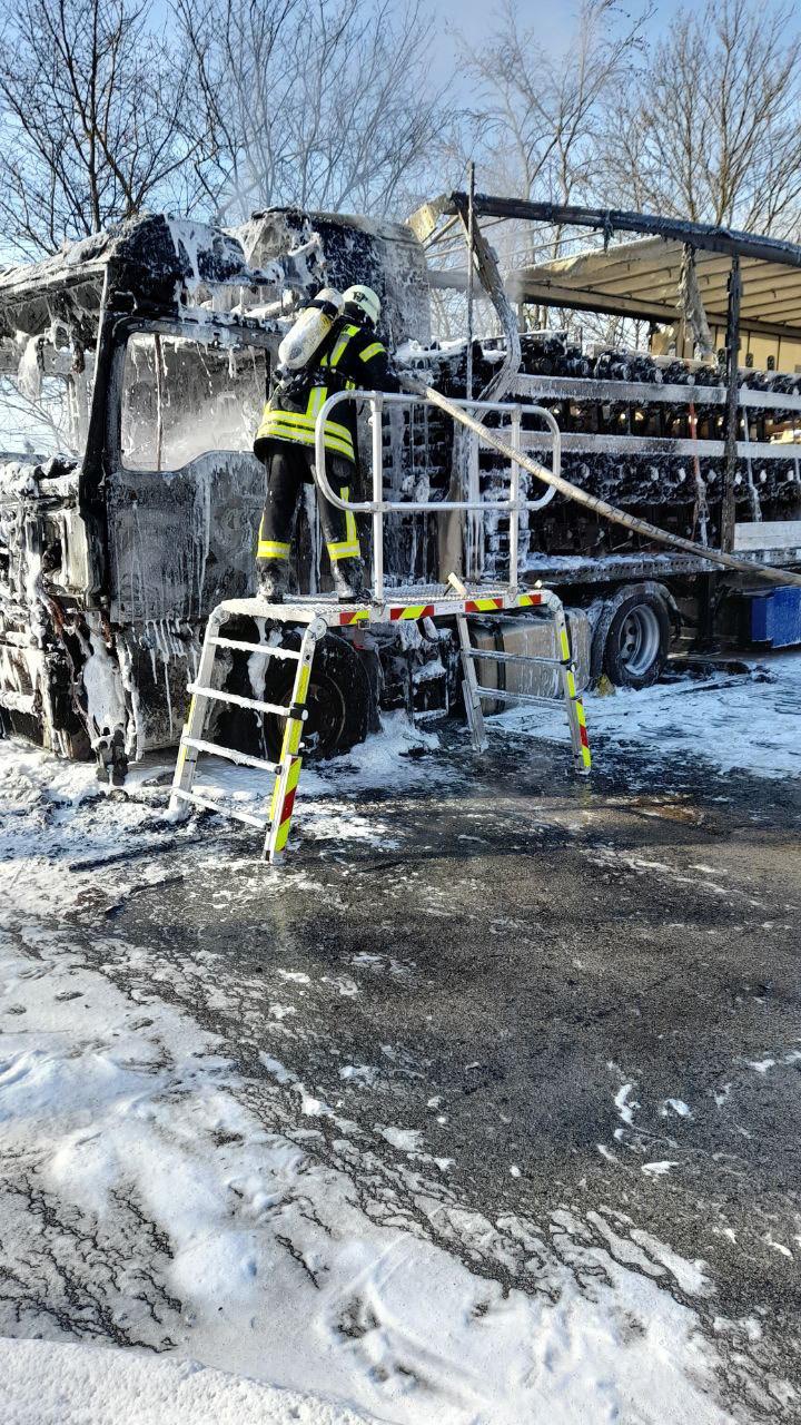 Mitten auf dem Dernbacher Dreieck, bei Streckenkilometer 81 brannte eine LKW Zugmaschine in voller Ausdehnung. Mittes Schaumangriff und unter Atemschutz wurde das Feuer in kürzester Zeit eingedämmt. Allerdings zogen sich die Nachlöscharbeiten über mehrere Stunden.