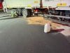 Um ein eintreten in die Kanalisation zu verhindern wurden Bindemitteldämme um die Gullys geschüttet. Als weitere Maßnahme wurde Bindemittel um das Fahrzeug herum ausgebracht.