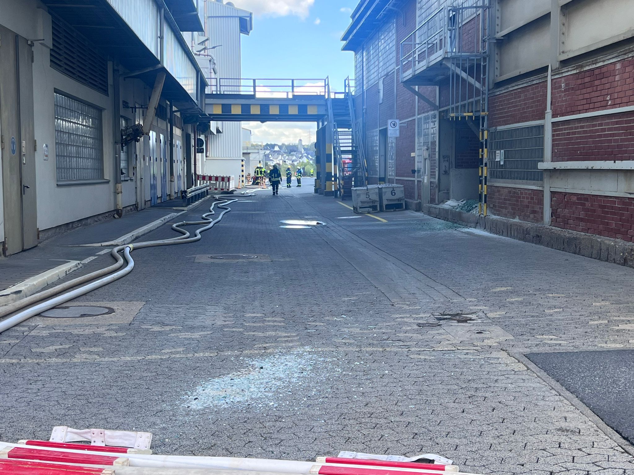 Die Feuerwehren aus Wirges und Dernbach übernahmen gemeinsam mit der Werkfeuerwehr den Löschangriff, währenddessen das THW eine Abstützung an einer Mauer der Auffangwanne baute.