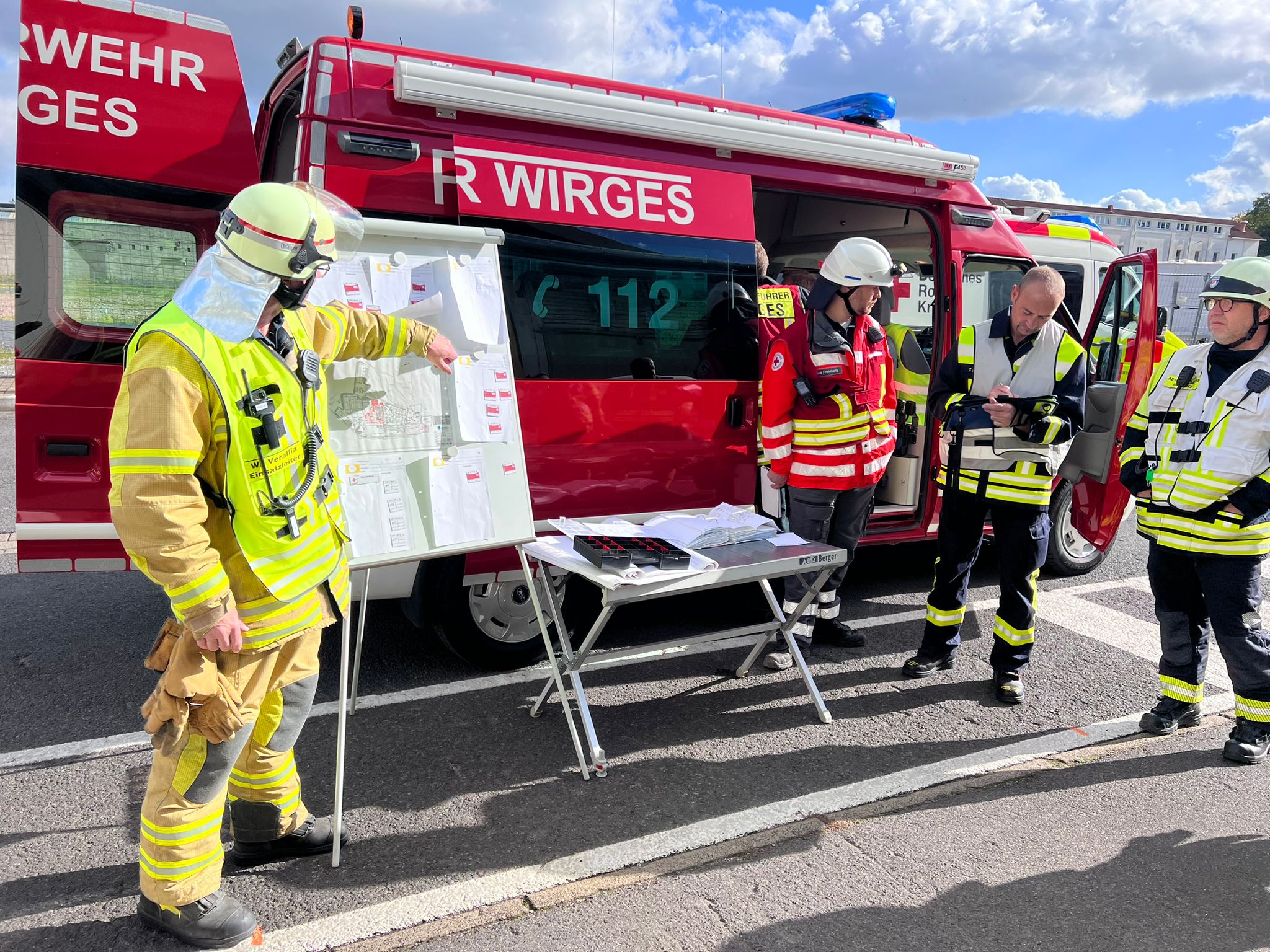 Als Szenario wurde ein Glasaustritt in der Produktion angenommen, welcher durch die Werkfeuerwehr ersterkundet wurde, woraufhin weitere Einheiten nachalarmiert wurden.